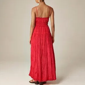 J. Crew Crinkled ruffle-trim dress Strawberry Pink Size L