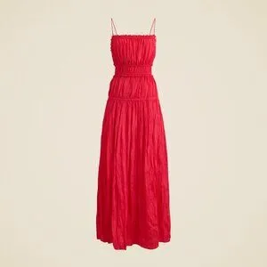 This versatile dress balances soft structure with playful details, thanks to the ruffle trim, comfy smocking and crinkled finish all over. Plus, it comes with a swingy A-line skirt for added movement.