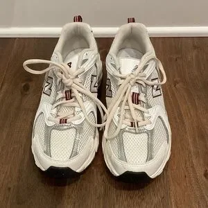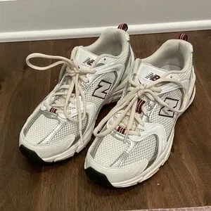 New Balance White and Red Athletic Sneakers