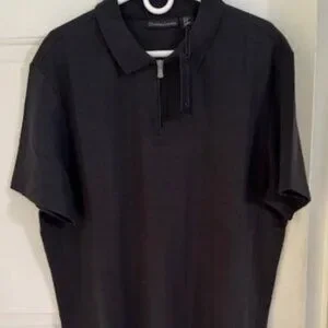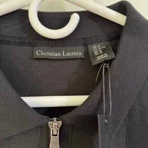 NWT Christian Lacroix Ribbed Polo Shirt 1/4 Zip Black Mens XL