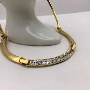 This Vintage, 1970’s , Gold Tone, Bar Link, Collar Necklace is amazing! Featuring crystals that dance with the light upon any movement. This is articulated so the chain moves with you making this very comfortable. This is a Choker/Collar style at 15”. All I can say about this one is…. WOWZA!