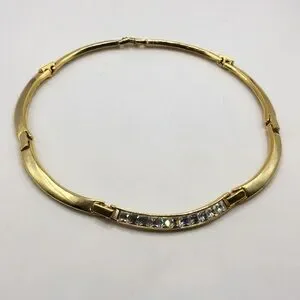 Vintage 70’s Rhinestone Bar Link Collar Necklace