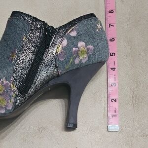 Gray Floral Ankle Booties with Side Zip