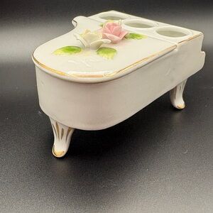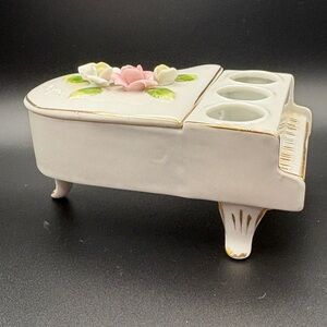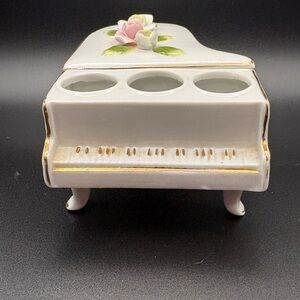 Vintage DeVilbiss Ceramic Floral Piano W/Gold Accents Candle Holder Trinket Box