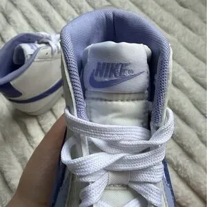 Elevate your casual wear with these Nike high-tops. Crisp white with striking purple details.