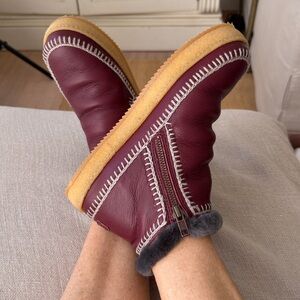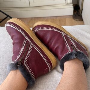 Free people New laidback London Setsu Burgundy crochet Shearling Cozy ❤️🌈