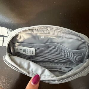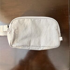 Sleek belt bag from lululemon athletica in light gray. Single zip compartment with subtle logo. Adjustable strap for hands-free carry. Clean, minimalist look for daily use.