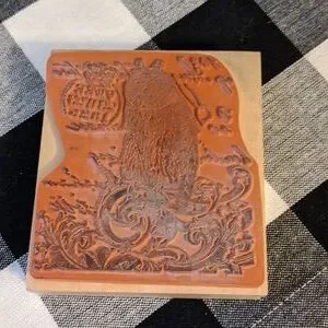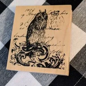 Wooden stamp featuring an intricate owl design. Excellent pre-owned condition.