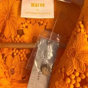 Anthropologie Bright Orange Floral Lace Button-Down Top