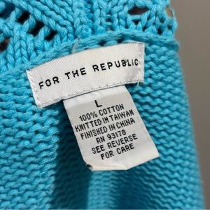 Elevate your layering game with this beautiful For The Republic open-knit cardigan. This lightweight blue shrug features a feminine ruffle trim, making it a versatile piece for both casual and dressy outfits.