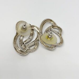 Vintage Silver Tone Modernist Abstract Swirl Pierced Post Earrings 1.5”