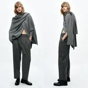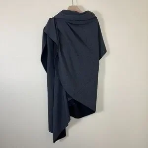 Zara Women Size M Gray Asymmetric Wool Cape Poncho Wrap Kimono Modern Minimalist