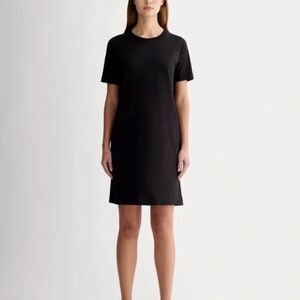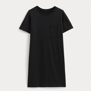 Sleek black T-shirt dress dress by Everlane. Features a simple design with a chest pocket. Ideal for versatile styling. Ever-lane size chart: Medium fits 6-8 Measurements: Bust: 35.5-36.5 Waist: 28-29 Hips: 39-40