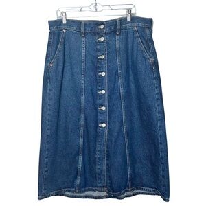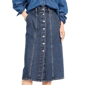 Old Navy High-Waisted Denim Jean Midi Skirt Button-Front in Medium Blue Wash