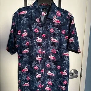 Rosso Milano Blue Floral Short Sleeve Button-Up Shirt Men's XL