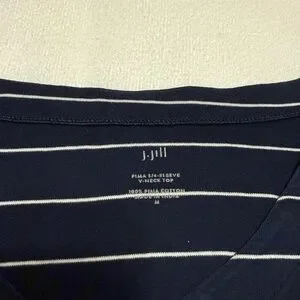 J Jill, striped, navy, 3/4 sleeve, women's top, medium, classic, casual