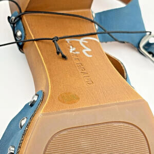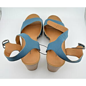 Lucky Brand Teal Turquoise Sandals with Wooden Heel Ankle Strap Size 7