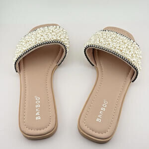New Women's Jeweled Rhinestone Pearl Slide Flat Jelly Sandal Open Toe - Size 6.5
