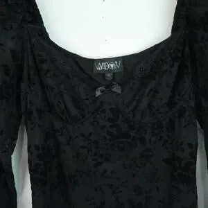 Dolls Kill Widow Cut Class Mesh Mini Dress XL Floral Goth Black Puff Sleeve