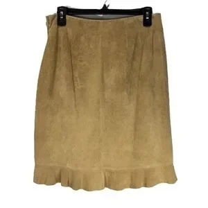 100% Suede Pencil Skirt Size 6 Tan Ruffle Hem Neutral Textured Classic Chic