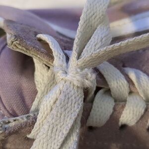 gently worn and in great ready wear vans old skool sneaker. leather (suede) lavender in color. there is a flaw in one lace. would recommend new laces evidently. size 9 in womens 7.5 in mens