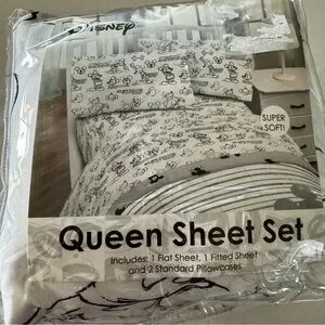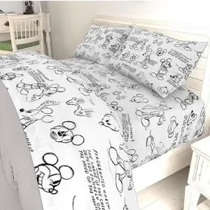 Enjoy the playful Jay Franco & Sons, Disney design with this queen sheet set. Features charming black and white Mickey Mouse sketches. Adds a whimsical touch to your bedroom.