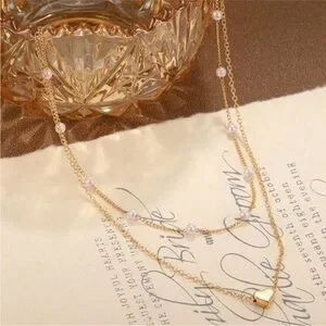 New gold tone faux pearl layered necklace