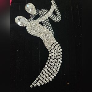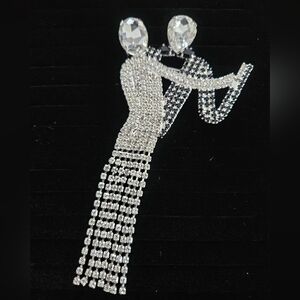 Vintage Art Deco Style Dancing Couple Brooch – Black & Clear Crystal Rhinestone