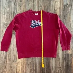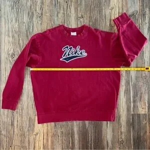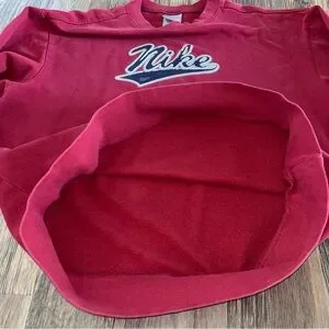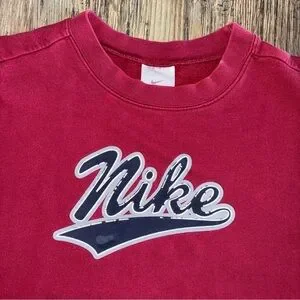 Vtg 90s Y2K Nike Flocked Spell Out Logo Fleece Crewneck Sweatshirt Mens XL Red