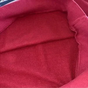 Sweatshirt is faded and the logo is cracking, peeling, and missing the swoosh and part of the trim.