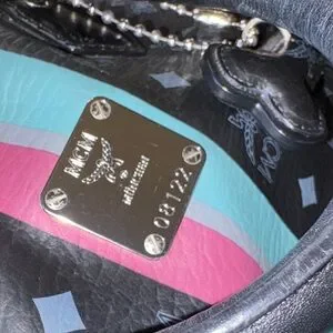 MCM Visetos Black Satchel with Pink and Teal Stripe