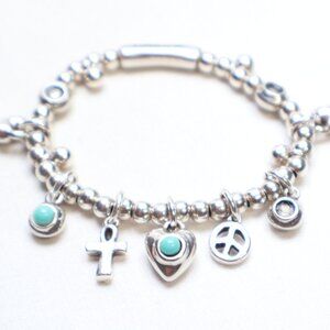 Uno de 50 Silver Tone Worship Turquoise Stretch Bracelet $80 MISSING 3 STONES! The item is missing 3 of the turquoise stones as shown. It is a beaded stretch bracelet. It retails for $80.