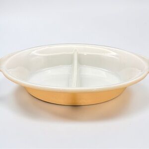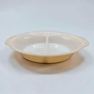Vintage Fire King Peach Luster Reverse Logo Divided Casserole Serving Dish #468