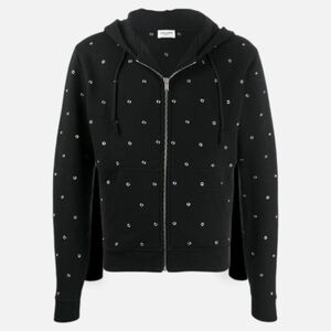 $1475 SAINT LAURENT Zip Up Hoodie Eyelet Grommet Rivet Medium