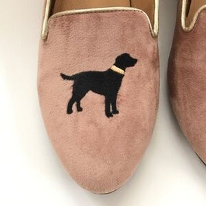 Jack Rogers Pink Velvet Embroidered Dog Loafers