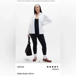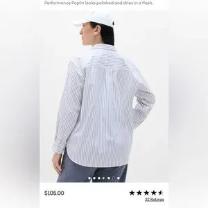 Athleta Navy Midday Relaxed Poplin Button-Down Long Sleeve Shirt, Women’s M