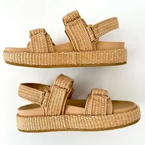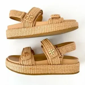 TORY BURCH | Kira Raffia Platform Sport Sandals Double T Logo Resort Summer 8.5