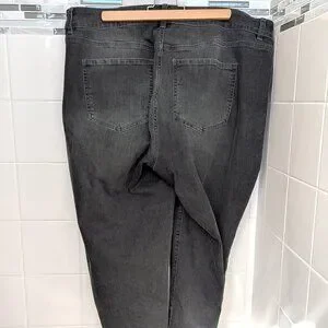 Lane Bryant Black Sequin Inserts Dark Gray Low Rise Girlfriend Distressed Jeans