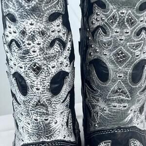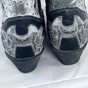 These Rockin Country Women’s Leather Studded Cowboy Boots in size 8 are a stylish and versatile addition to any wardrobe. Made from quality leather with colorful studs, these boots offer a Western-inspired design perfect for a casual day out or a night on the town. The unique accents and multicolor detailing set these boots apart, making them a standout choice for any woman looking to add a touch of country flair to her footwear collection.