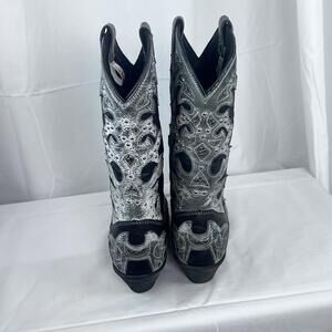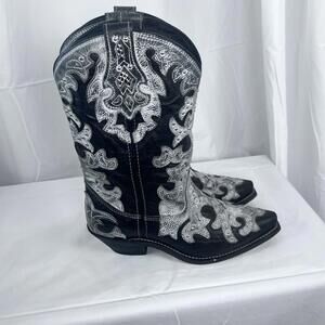 Rockin Country Women’s Leather Studded Cowboy Boots Size 8 Med. Worn Twice! EUC