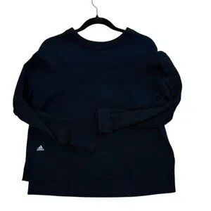 Sleek black crewneck sweater by Adidas. Ideal for casual wear and golf. Back is slightly longer than front