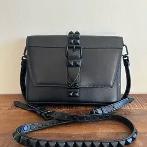 Elegant black crossbody bag with studded detail. Perfect for versatile styling.