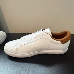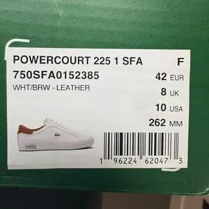 Stylish Lacoste sneakers in white with tan accents. Perfect for casual wear.