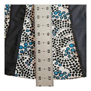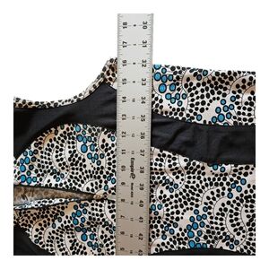 Elevate your wardrobe with this stylish sleeveless top featuring a striking black and blue pattern.