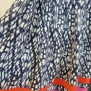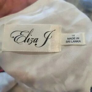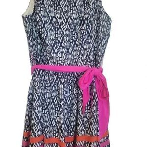 Eliza J Women's Navy & White Poly Print Colorful Striped Ribbons Pink Sash Sleeveless Lined Full Skirt Dress EUC sz 14