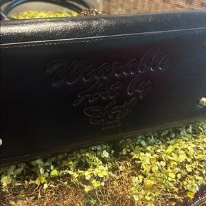 Sharif wearable art satchel/crossbody bag featuring a unique floral gear design. Crossbody strap included. Perfect for adding a touch of elegance to any outfit.