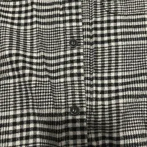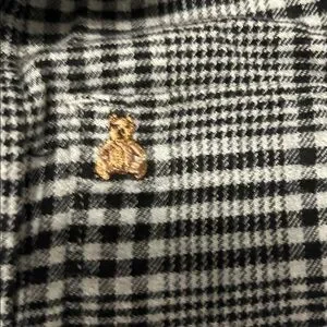 Flannel with clearly a checkered pattern very good quality. there are two pockets and one pocket has a little teddy bear on it.