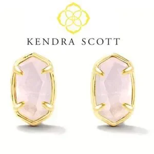 NWT Kendra Scott Emilie Gold Rose Quartz Stud Earrings