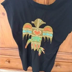 Johnny Was Black Gorgeous Embroidered Feather Graphic Women's Top