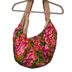 Hand Crafted pink orange Tropical Floral cotton hobo bag 18x9"